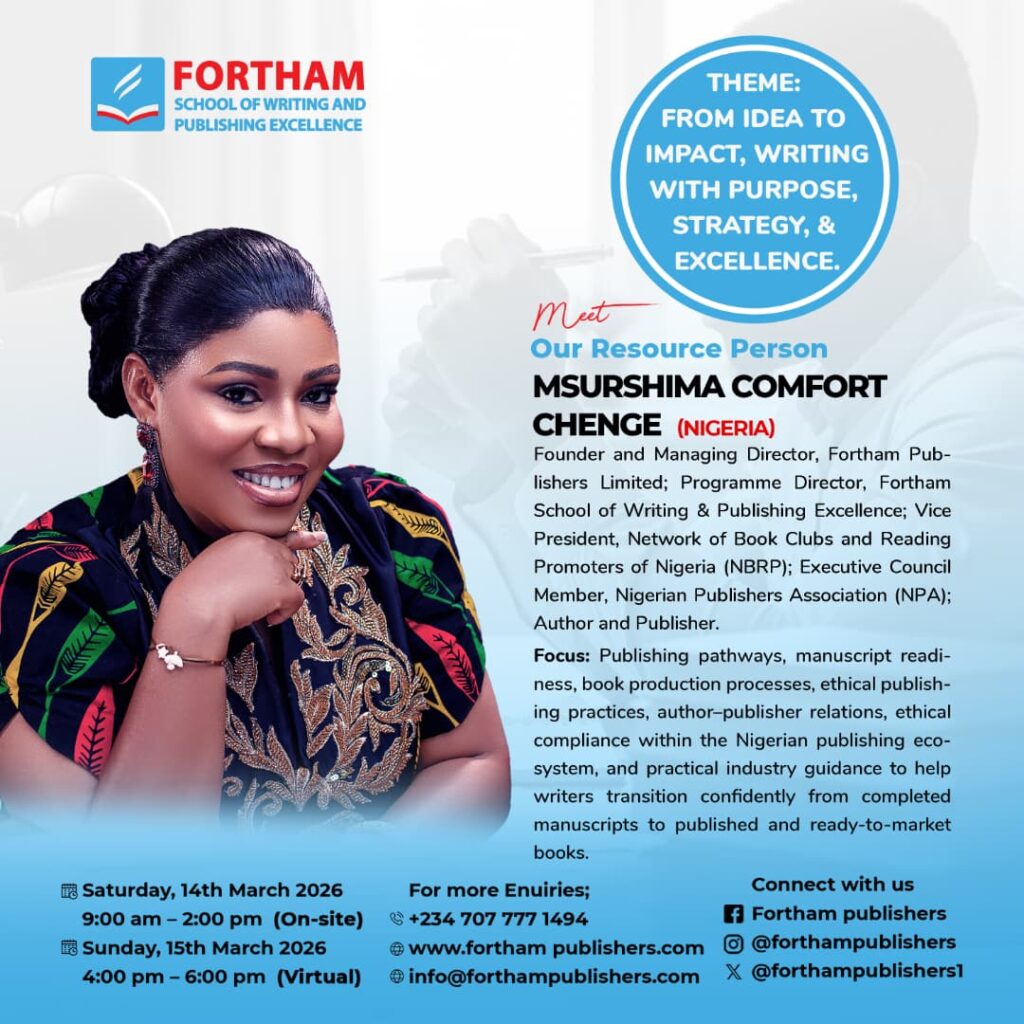Participants will benefit from practical, real-world insights drawn from both the Nigerian and international publishing ecosystem.